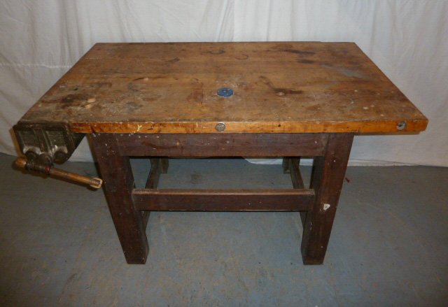 Antique Maple Butcher Block Top Work Bench Vise Feb 07 2017