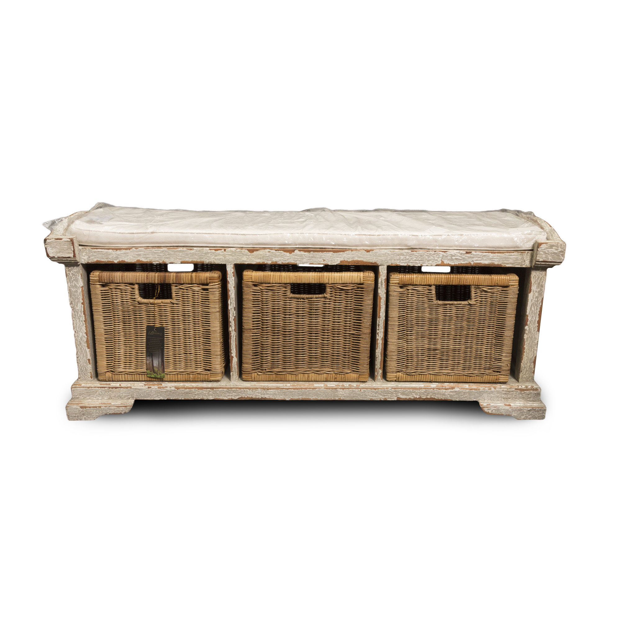 Details About White Storage Bench With 2 3 Wicker Baskets Cushion Seat Neutral Hallway Hall Bench With Storage Hallway Storage Bench Storage Bench With Baskets