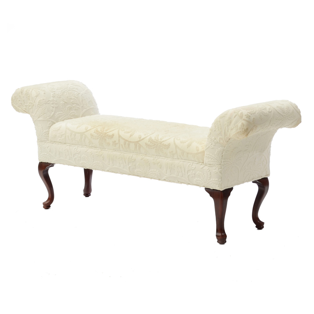 Boudoir Bench W Queen Anne Legs Rolled Arms Upholstered Bench