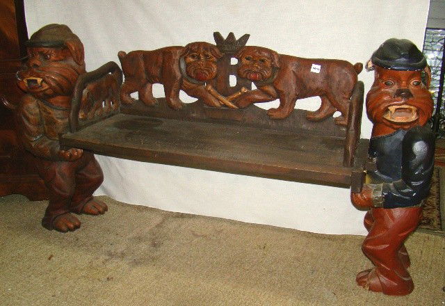 661 Carved Wooden Bench W Standing Bulldog Ends Carve Nov 21