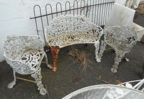 Antique Victorian Cast Iron Garden Bench And Chairs With Desirable