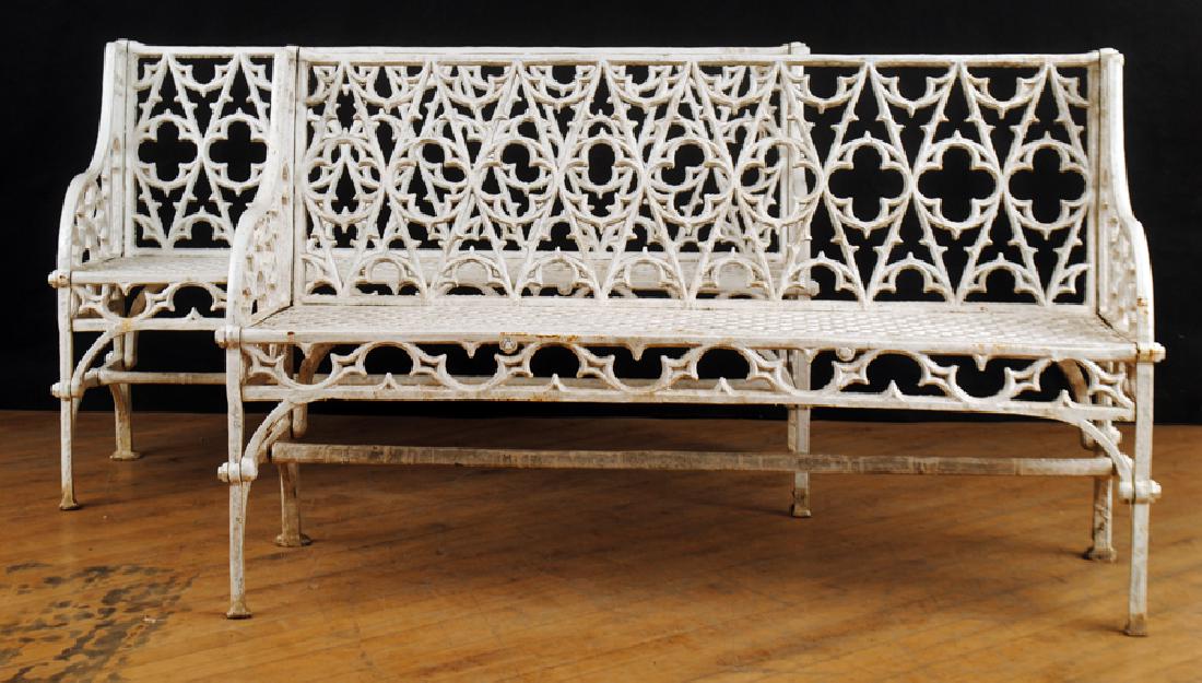 Pair Cast Iron Gothic Style Garden Benches Jun 15 2019