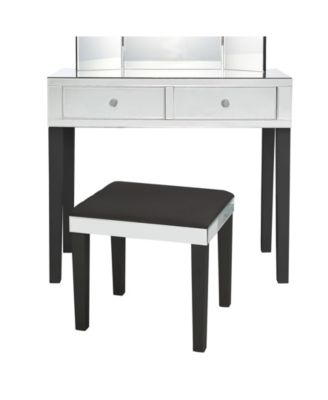 Inspired Home Juliet Mirrored Vanity Stool Trifold Mirror Set