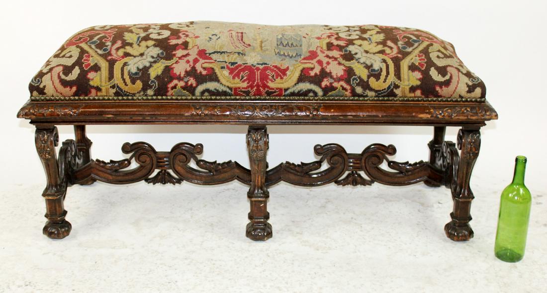 For Auction Mid Century Queen Anne Needlepoint Bench 0267 On