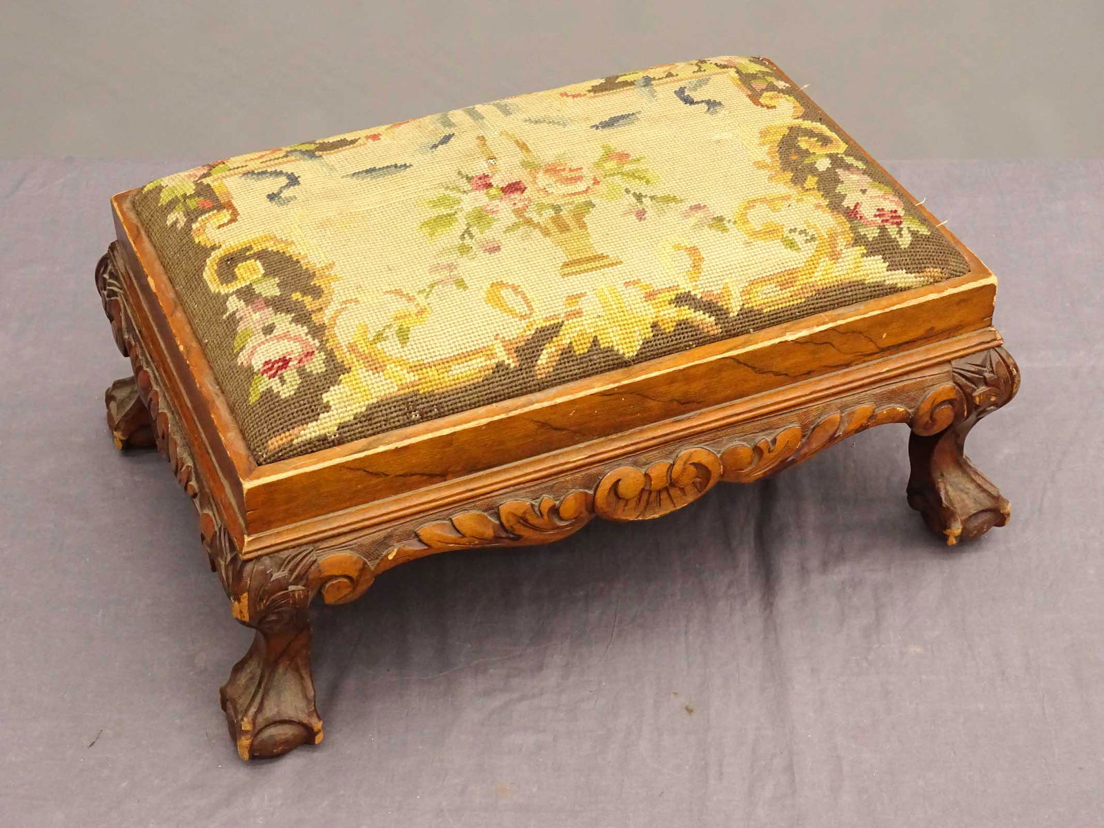Sold French Hand Carved Antique Bench Or Footstool Needlepoint