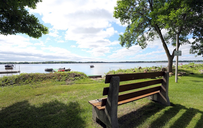 Park Bench On North Shore Lake Stock Photo Edit Now 1167807