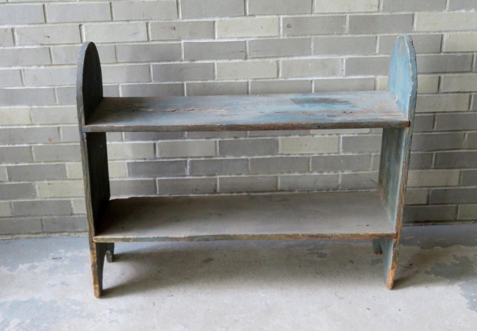 19th Century Bucket Bench Two Shelves Old Paint Primitive